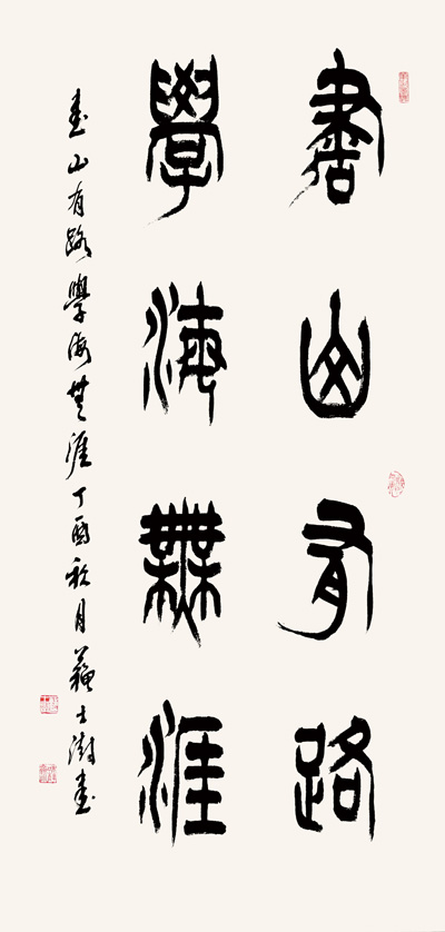 作者:苏士澍(1949-)   作品:书山学海联   尺寸:139×69cm