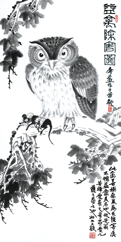 作者:李燕(1947-)   作品:《益禽除害图》  尺寸:137×69cm