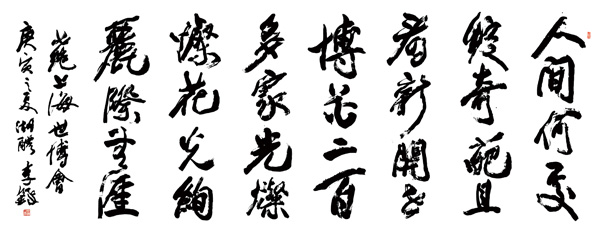 作者:李铎(1930-2020)  作品:自作诗《上海世博会》  尺寸:143×632cm