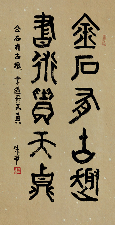 作者:朱军(1964-)    作品:金石书道联  尺寸:128×65cm