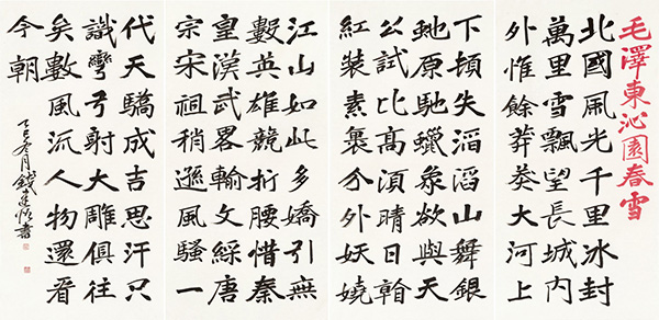 钱建恒 毛泽东词《沁园春·雪》 137cm×69cm×4